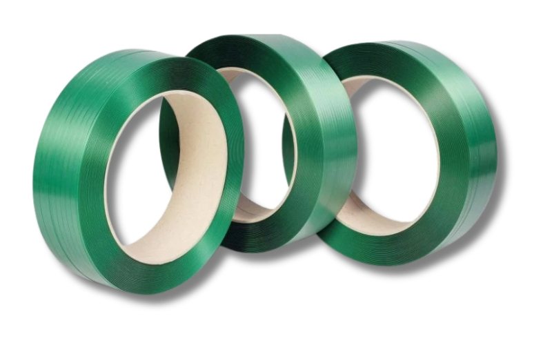 PET strap with matching seals and buckles. PP for lighter loads. Tensioners and dispensers stocked. Edge protection on request.